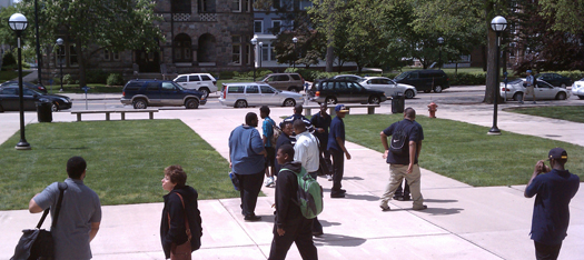Deb arranged pizza to be ready for us when we arrived, and Brandon met us for lunch. Brandon (U of M Physics faculty) has met the students on three previous occasions; once on the last field trip to AA, and twice at Tech Club in Detroit this past semester. He caught up with the students while we ate and let them know we would be heading to Angell Hall for a lesson on financial aid.