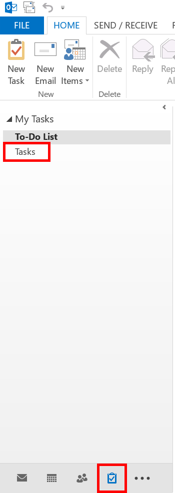 Click on your Task folder on the left-hand side of your Outlook window (the icon for My Tasks can be found at the bottom of this column. Select that icon to see your tasks:
