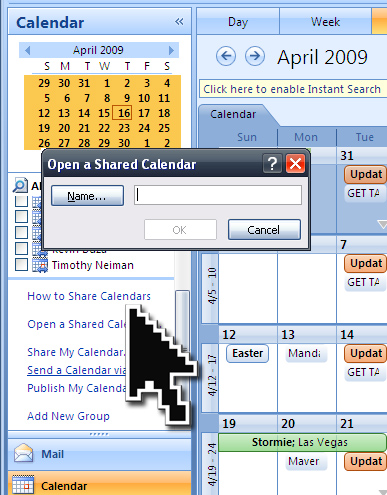 2. Type the name ofa contact whose calendar you want to see in the Name box, or click Name to select a name from the Address Book.